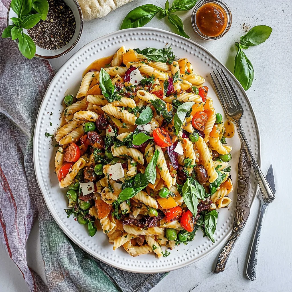 Du kannst dieses Rezept nach Belieben variieren! Tausche die Fusilli gegen Vollkornpenne aus, um eine gesündere und nussigere Note zu erhalten. Füge zusätzlich Kirschtomaten hinzu, die dem Salat eine frische Süße verleihen und für einen Farbkontrast sorgen. Um das Aroma zu intensivieren, kannst du getrocknete Oregano oder Thymian verwenden, die den mediterranen Charakter des Salats wunderbar unterstreichen!