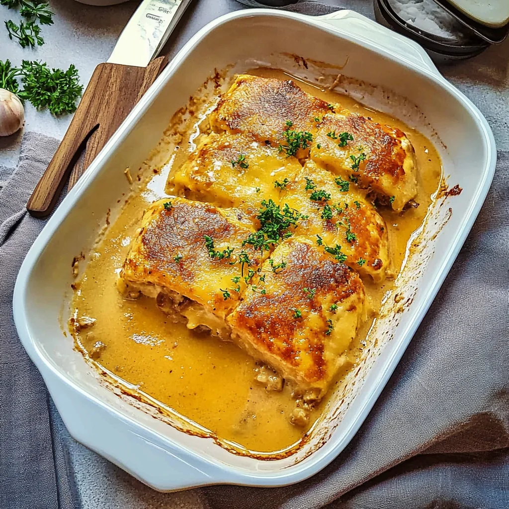 A creamy and flavorful chicken dish with onions, perfect for a comforting meal.